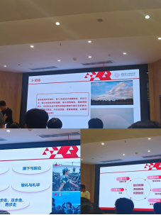 随后进行军训成果汇报展示。通过照片与视频集锦,陈宣卓、刘圳两位军训优秀学员带领大家回顾了军训期间队列训练、内务评比、团队协作等精彩瞬间,展现了同学们坚韧不拔的意志和昂扬向上的精神风貌。刘圳同学总结说:“军训时培养的良好生活习惯以及坚毅精神,为我们老员工活奠定了良好的基础。”